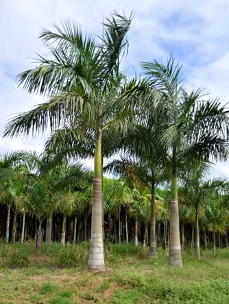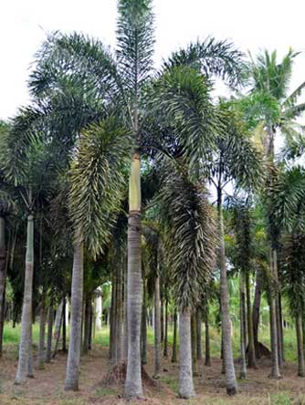 Considered the most elegant and the tallest of all Royal Palm varieties. Grows up to 30 meters or more, bulbous at the base, tapering to the trunk. With its large spreading crown, it provides ample shade to pedestrians or to shade loving plants below it. Young trunks have a bright green color providing color contrast to its dark leaves.