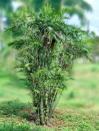 This palm tree grows around 5-7 ft tall. It can be found in shady indoor spaces and a good choice for placing around furnitures.